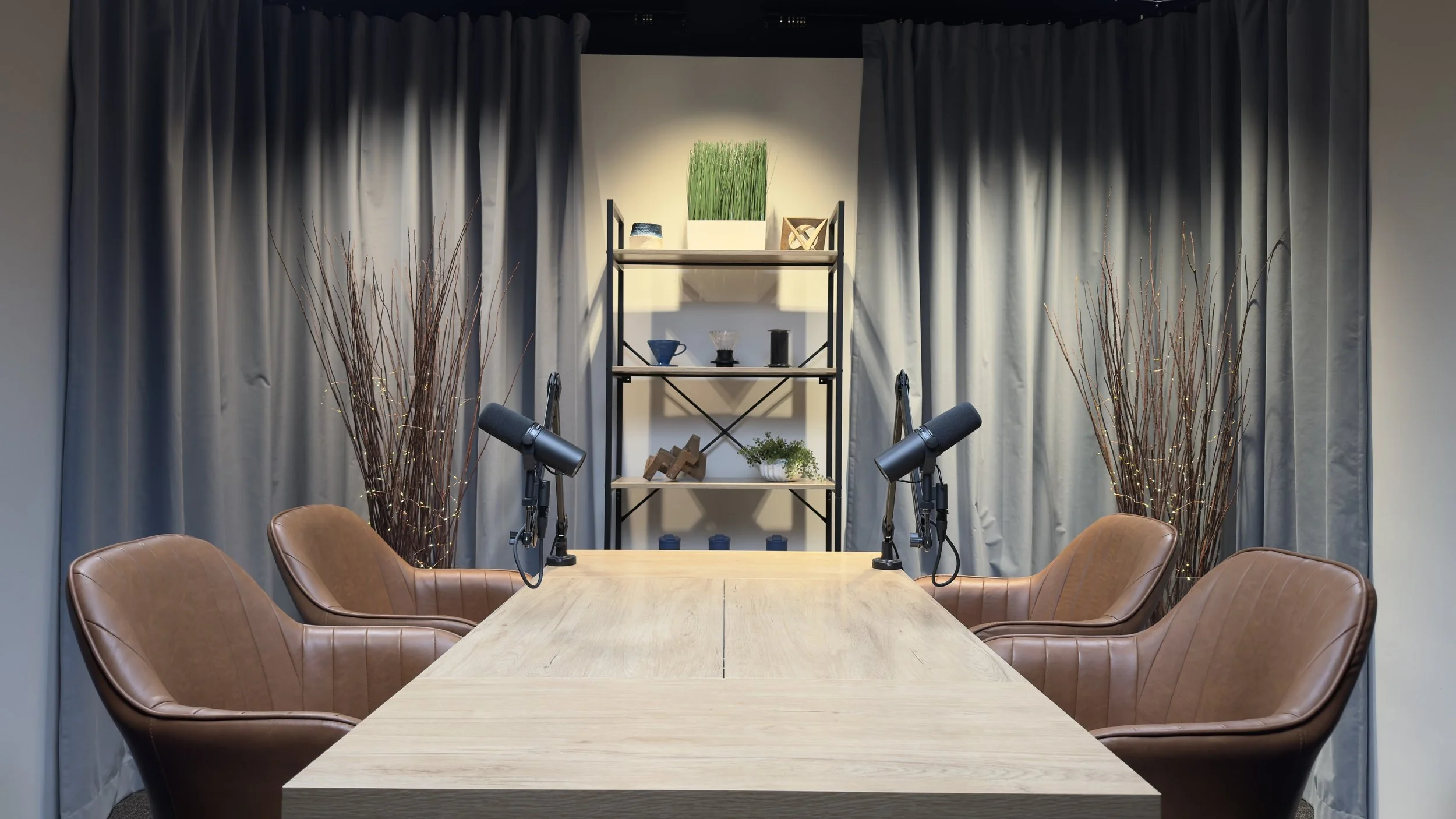 Book a podcast recording session and let us know which studio set you would like.